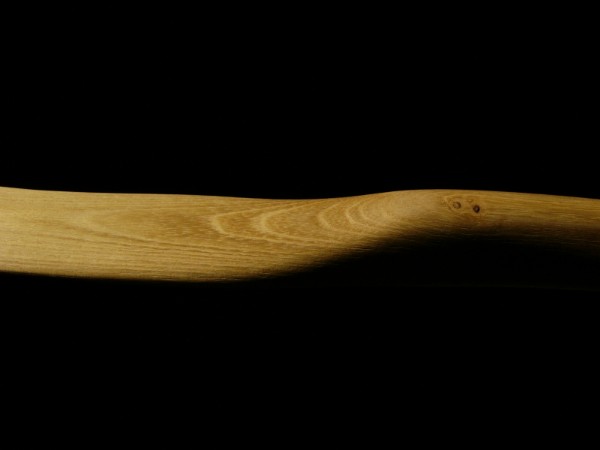 Die Robinie (falsche Akazie) ist eine ursprünglich in Nordamerika beheimatete Baumart, die erst seit dem 16. Jahrhundert in Europa kultiviert wird. Sie besitzt in der Regel eine schmale gelblich/weiße Splintholzschicht und gelbbraunes glänzendes Kernholz. Sie zählt zu den ringporigen Hölzern. Es gilt auch hier, je dicker die Spätholzschicht ist, desto besser ist sie zum Bogenbau geeignet. Robinie in guter Qualität eignet sich hervorragend, um schnell schießende Flachbögen oder schöne Englische Langbögen zu bauen. Viele behaupten, das Robinie nach Eibe das beste einheimische Bogenholz ist. Da das Splintholz der Robinie zum Reißen neigt, sollte die Splintholzschicht beim Bogenbau komplett entfernt werden.