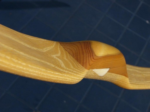 Bogen aus Bergulme mit Griffstück aus Eibe mit Kern - und Splintholz und arrow-plate - Einlage aus Bein.